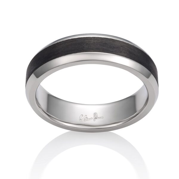 Carbon fiber ring with medium channel and beveled edges. Comfort fit interior.