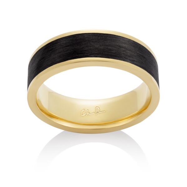 Carbon fiber ring with narrow channel. Flat profile, comfort fit interior.