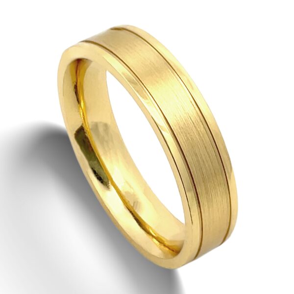High polish micro-grooves separate medium polished rails from a matte finished center. Flat profile.