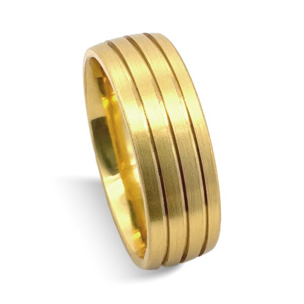 Evenly spaced square micro-grooves adorn this style. 1 groove: 5mm; 2 grooves: 6mm; 3grooves: 7mm. Slightly rounded profile, matte finish.