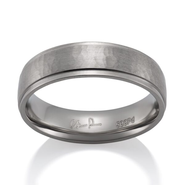 Stepped rails, hammered center. Slightly rounded profile.