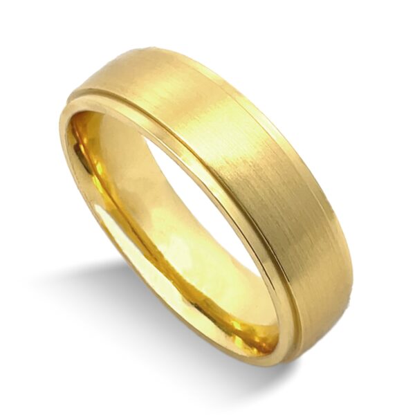 Polished stepped rails and matte center. Comfort fit interior.