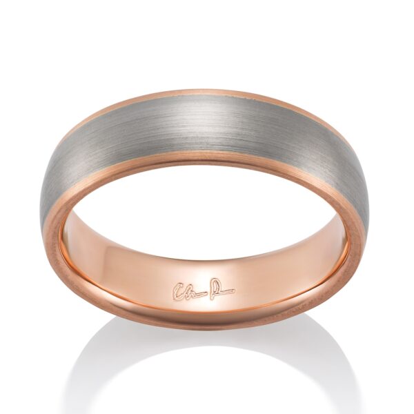 500Pd core, liner and narrow rails in a contrasting metal color. Slightly rounded profile. Matte finish.