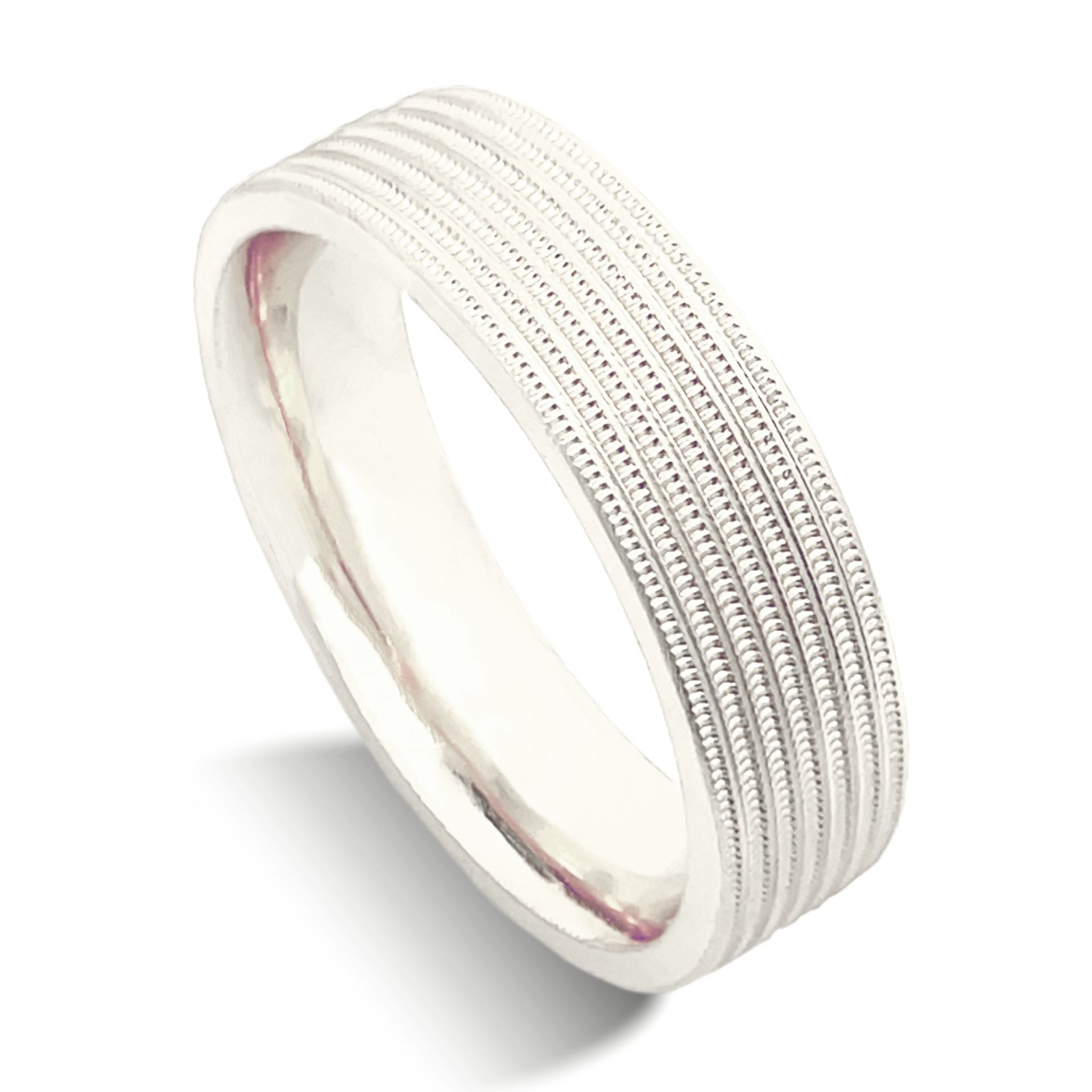 Evenly spaced rows of milgrain decorate these bands.